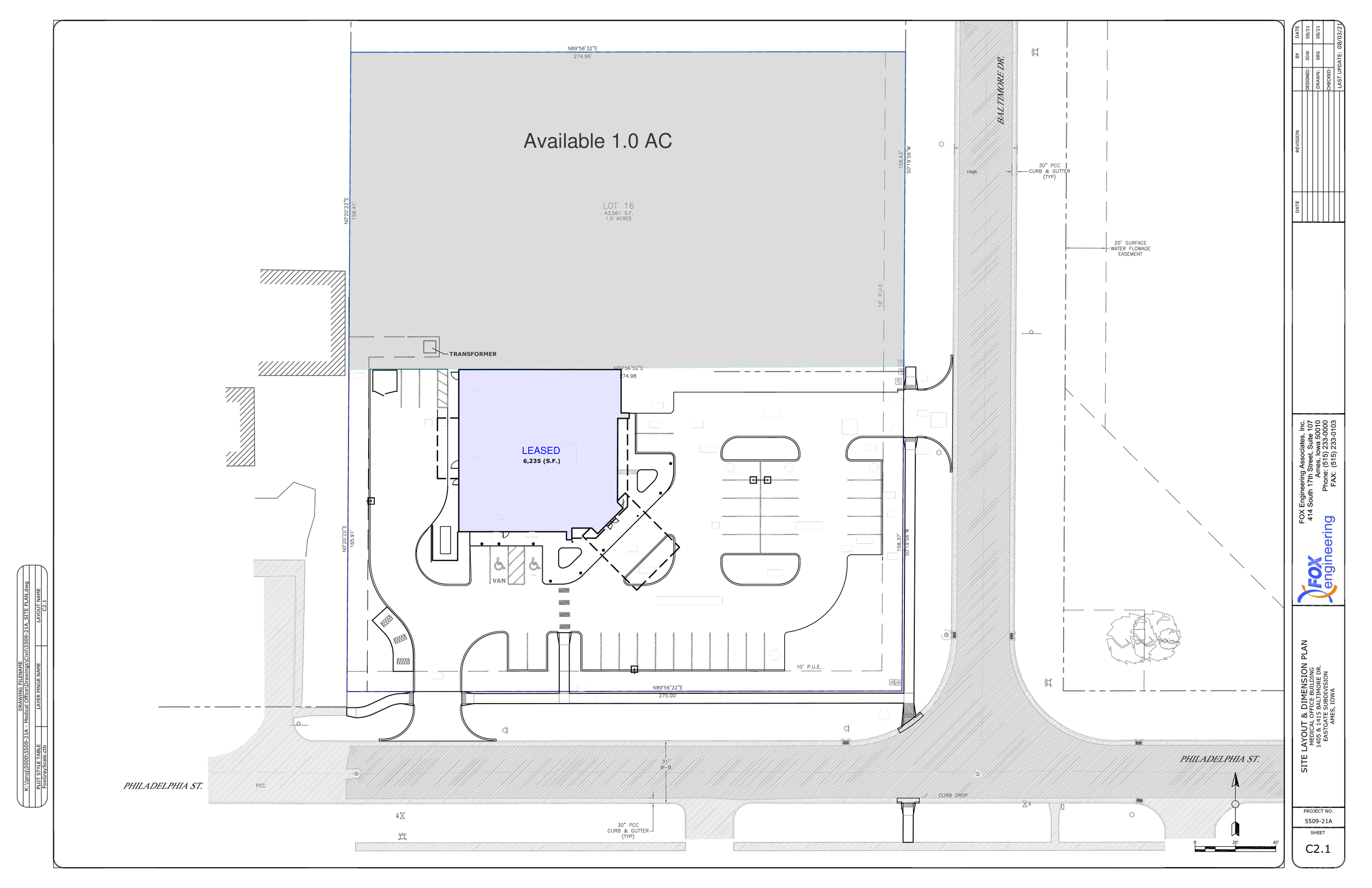 This medical office space is home to Sturm Cosmetic Surgery. Additional leases are available. New construction added a 6,235-square-foot medical building to this site on two acres at the corner of Philadelphia Street and Baltimore Drive, just off East 13th Street at 1405 Baltimore Dr. Ames, IA 50010.